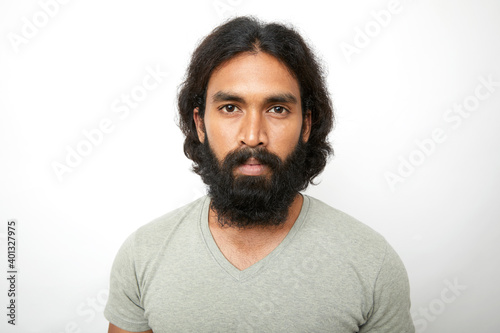 © krishna, Fototapeta premium Portrait with wide angle lens on white.