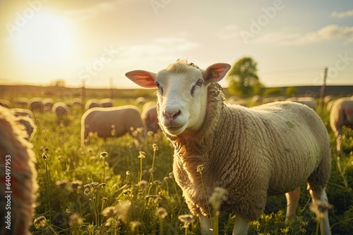 Obraz premium Portrait woolly sheep on the farm AI Generative