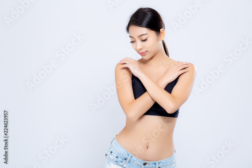 Fototapeta premium Portrait young asian woman smiling beautiful body diet with fit isolated on...