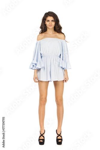 © Andrey_Arkusha, Naklejka premium Portrait young beautiful brunette woman