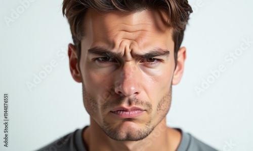 © junet, Obraz premium Portrait young man furrowed brow pouting expression annoyed