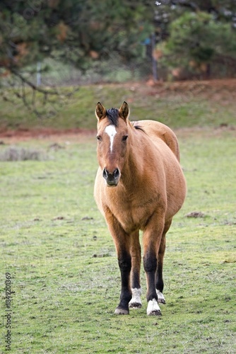 © Gregory Johnston, Fototapeta premium Portraiture of a brown horse in field.