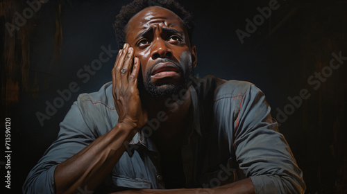 Fototapeta premium Portray the profound emotions of a man gazing with a somber expression....