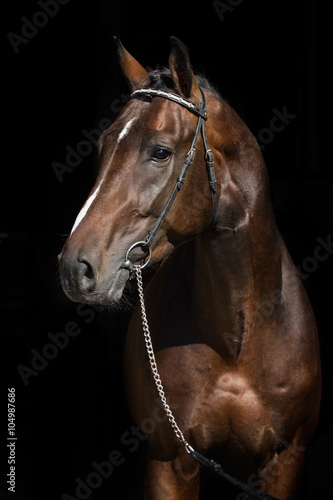 Fototapeta premium Portret klaczy Bay na czarnym tle