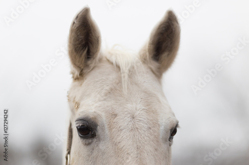 Naklejka premium Portret konia pełnej krwi z bliska w przyrodzie.