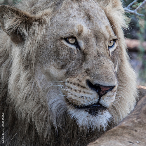 © henk bogaard, Fototapeta premium Portret młodego samca lwa w Sabi Sands Game Reserve, części regionu Greater Kruger w RPA