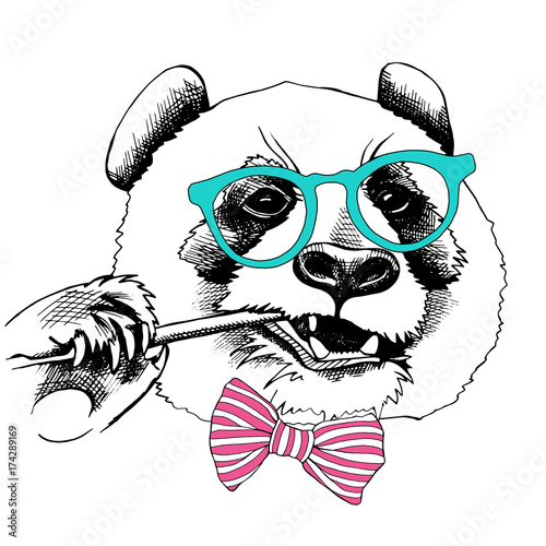 © Afishka, Fototapeta premium Portret pandy w okularach z krawatem. Ilustracji wektorowych.