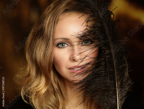 © mycatherina, Obraz premium Portret pięknej kobiety z piórem