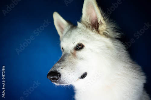 © Seance_Photo_Sylwia, Obraz premium Portret psa na niebieskim tle