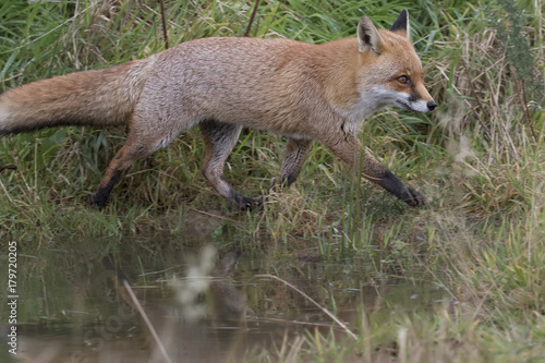 © Paul, Fototapeta premium portret red fox bliska i odbicie w wodzie