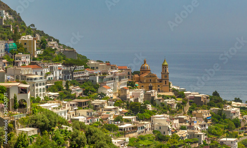 Fototapeta premium Positano Hill View. Beautiful view of Positano at daytime, with its colorful...