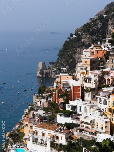 © ollirg, Naklejka premium Positano panorama del porto della costa e del villaggio