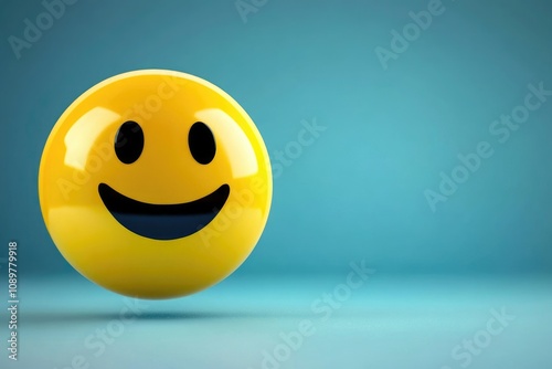 © Olena, Fototapeta premium Positive Feedback. Joyful Expression Inside Speech Bubble Against Bright Blue Backdrop