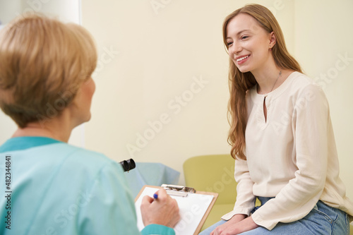 © Svitlana, Obraz premium Positive female patient listening to her practitioner