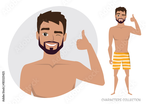 © Anastasiia Kozubenko, Fototapeta premium Positive guy smiling and recommended.