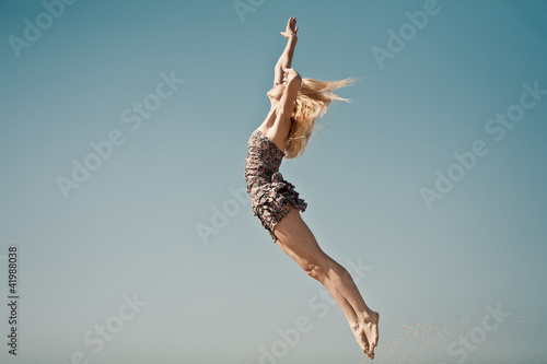 Obraz premium Positive jumping in sky