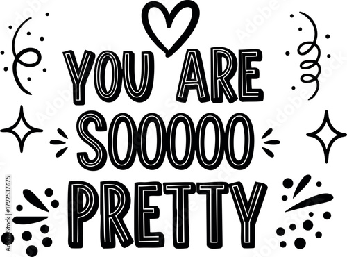 © DesignVectX, Naklejka premium Positive motivation quote you are so pretty with heart and star decorations vector design illustration