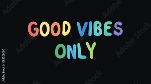 © Interactive Arts, Fototapeta premium Positive motivational phrase “Good vibes only” on a black background written in cheerful colorful letters