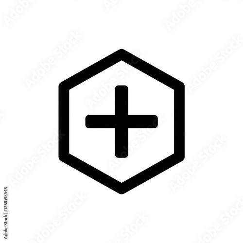 Obraz premium Positive result is presented with black plus sign inside hexagon frame over white background