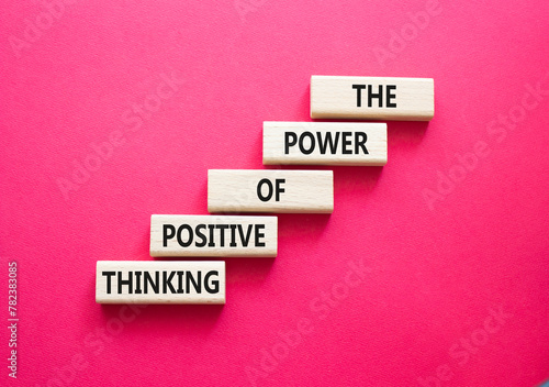 © Natallia, Obraz premium Positive Thinking symbol. Wooden blocks with words The Power of Positive Thinking. Beautiful red background. Positive Thinking concept. Copy space.