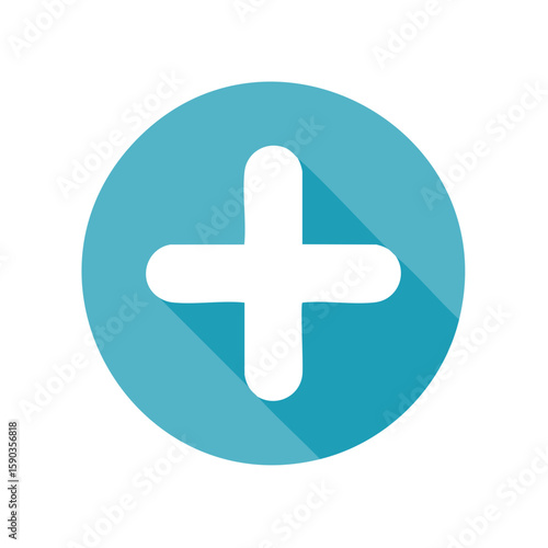 Fototapeta premium Positive Vibes Circle White Plus Sign on Blue Button with Soft Long Shadow