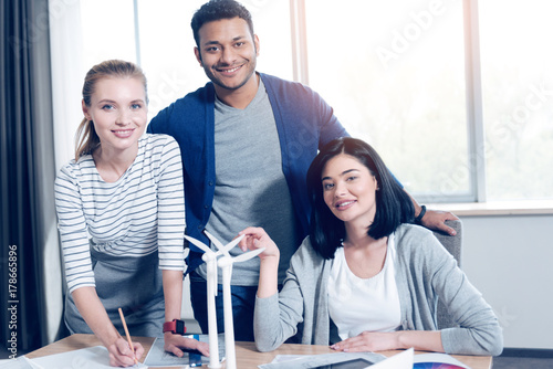© Viacheslav Yakobchuk, Fototapeta premium Positive women working with handsome man