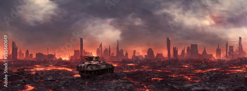 © Roman Studio, Naklejka premium Post apocalypse. Nuclear apocalypse survivor. Ruined Cityscape. Concept. Banner size. Header