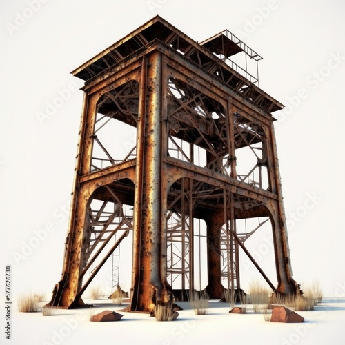 Fototapeta premium Post apocalypse rust metallic construction, wasteland object