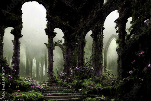© DNY3D, Obraz premium Post-apocalyptic city, dystopic overgrown buildings ,made with Generative AI