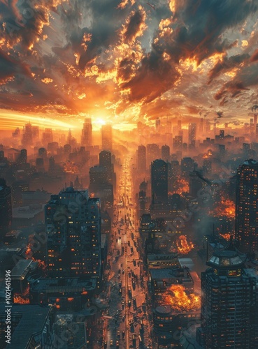 © duyina1990, Fototapeta premium Post-Apocalyptic City Sunset Artwork