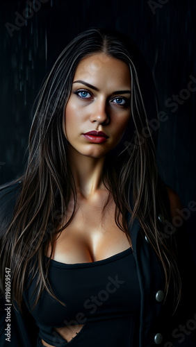 © Plamen, Fototapeta premium Post-apocalyptic female warrior with dark hair