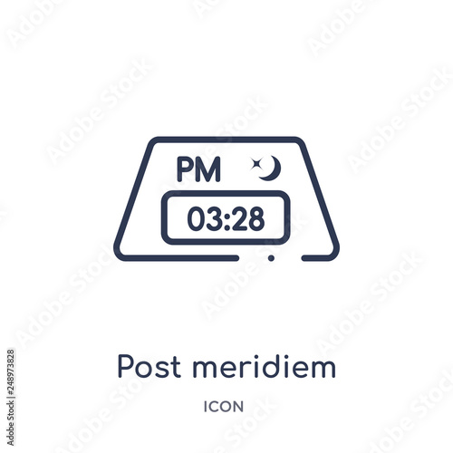 © Meth Mehr, Obraz premium post meridiem icon from time and date outline collection. Thin line post meridiem icon isolated on white background.