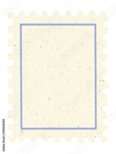 Obraz premium Postage stamp vertical vintage ivory yellowed textured paper blue border with...