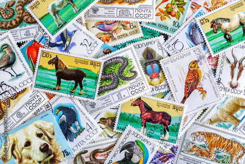 Obraz premium Postage stamps.A collection of world stamps in a pile.Postage stamps from...