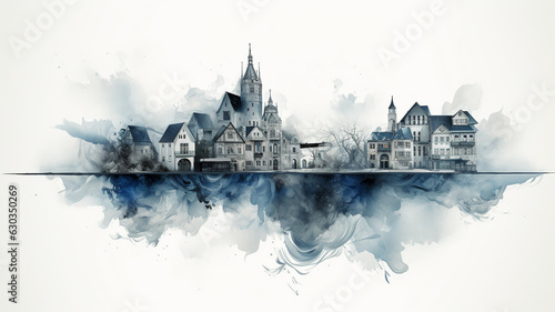 © sema_srinouljan, Naklejka premium Poster abstract watercolor of the city. Sustainable development plan concept
