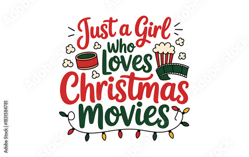 © ARTSPRIO, Fototapeta premium Poster for a movie that says "Just a girl who loves Christmas movies"