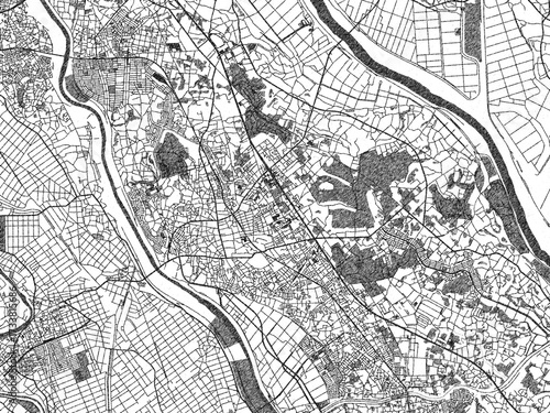 © W&S Stock, Naklejka premium Poster-ready black and white illustration map of Noda, Japan, detailed and artistic.