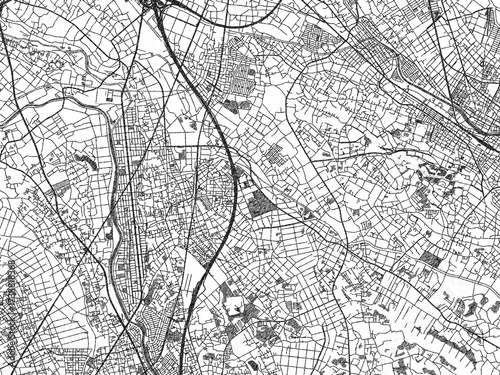 © W&S Stock, Fototapeta premium Poster-ready black and white illustration map of Shiraoka, Japan, detailed and artistic.