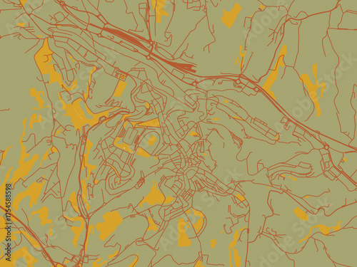 © W&S Stock, Fototapeta premium Poster-ready flat map of Siena, Italy, earthy sage background with rust roadways and ochre details.