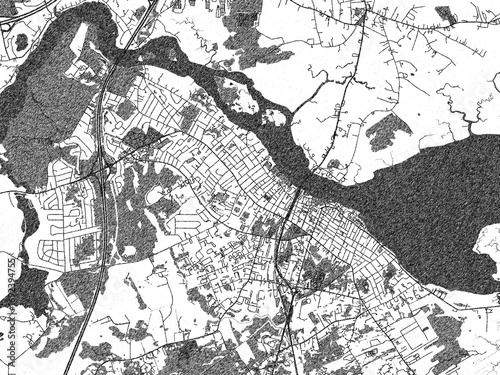 © W&S Stock, Naklejka premium Poster-ready illustration map of Newburyport, Massachusetts, in black and white hand-drawn style.