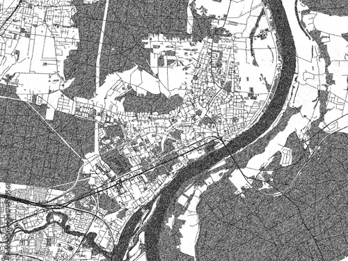 © W&S Stock, Fototapeta premium Poster-ready monochrome city map of Fordon, Poland, with detailed streets and rivers.
