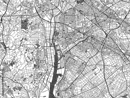© W&S Stock, Naklejka premium Poster-ready monochrome city map of Kariya, Japan, with detailed streets and rivers.