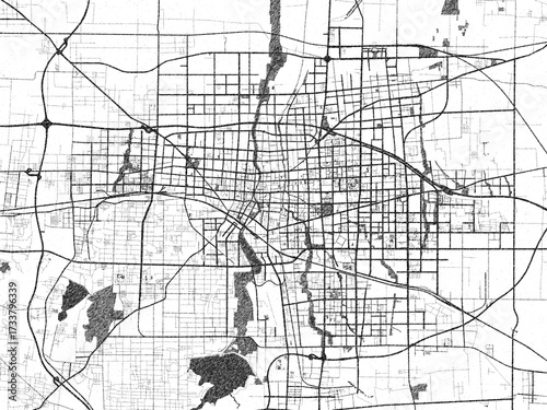 © W&S Stock, Naklejka premium Poster-ready monochrome city map of Weifang, China, with detailed streets and rivers.