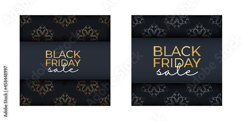 Fototapeta premium Poster Template For Black Friday In Dark Blue With Luxurious Gold Pattern