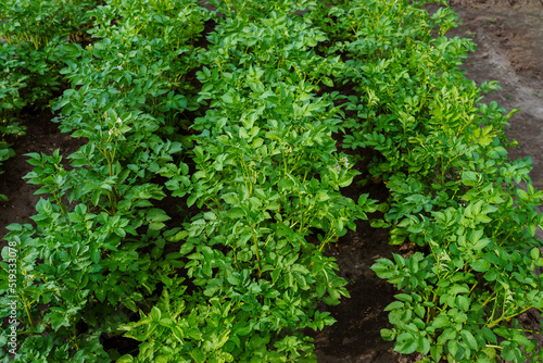 Fototapeta premium Potato bushes grow in the open field in the garden