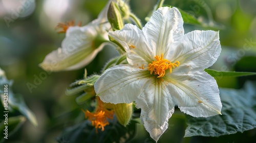 © Kasorn, Obraz premium Potato flower, highlighting its delicate petals and vibrant colors.