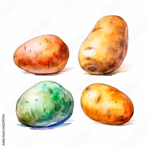 Fototapeta premium potato set watercolor on a white background created with Generative Ai