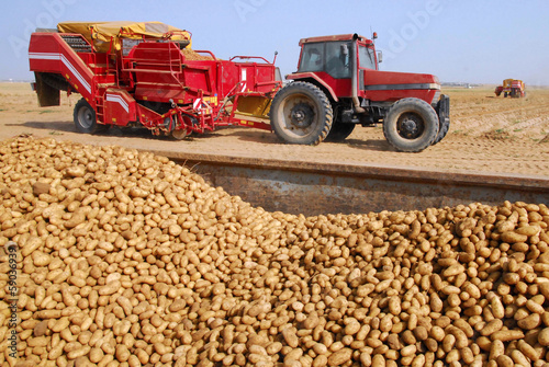 © Rafael Ben-Ari, Naklejka premium Potatoes and tractor in potatoes field