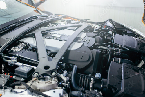 © andrew_shots, Fototapeta premium Potężny silnik nowoczesnego samochodu sportowego