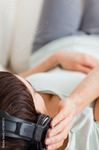 Fototapeta premium Potrait of a brunette wearing heaphones